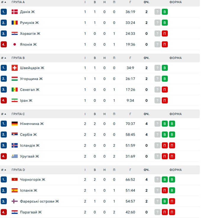 - Фарерські острови – Парагвай – 36:25 (16:13)