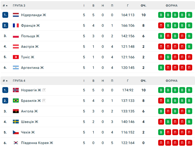 У п'ятницю, 5 грудня, на чемпіонаті світу з гандболу серед жіночих збірних пройшли шість матчів. Команди продовжують боротьбу за вихід до плейоф.
