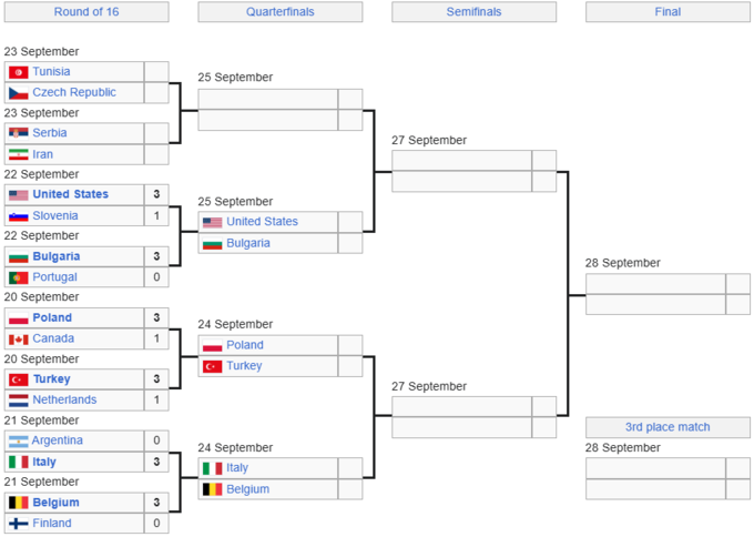 Сьогодні, 25 вересня, на Філіппінах завершилися матчі плей-оф 1/4 фіналу чемпіонату світу з волейболу серед чоловіків. У драматичному протистоянні за вихід до півфіналу збірна Болгарії, програючи по ходу зустрічі 0:2 за сетами, зуміла вирвати несподівану перемогу над США на тай-брейку.
