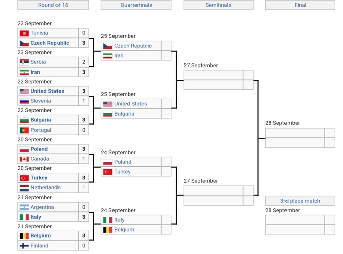 Сьогодні останні матчі зіграли команди груп А (Туніс, Іран, Єгипет, Філіппіни), C (Аргентина, Франція, Фінляндія, Південна Корея), F (Італія,