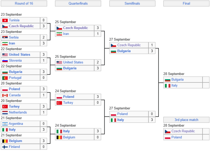 У фіналі Італія зіграє проти команди Болгарії. Польща натомість зіграє у поєдинку за третє місце проти команди Чехії.