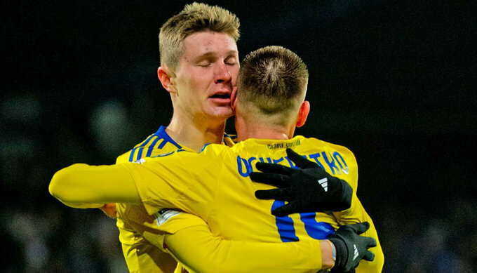 Голи: Еллертсон (35), Гвюндмюнссон (59, 75) – Маліновський (14, 45+5), Гуцуляк (45), Калюжний (85), Очеретько (88 )
